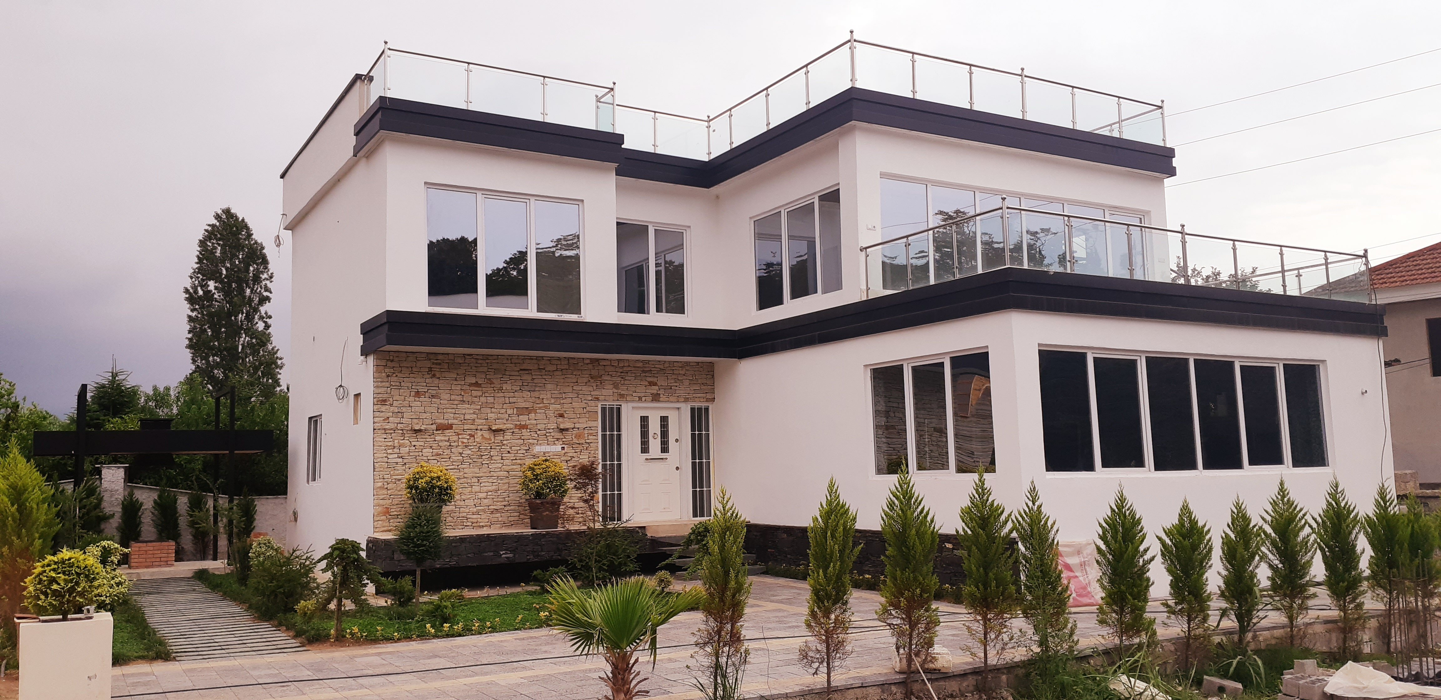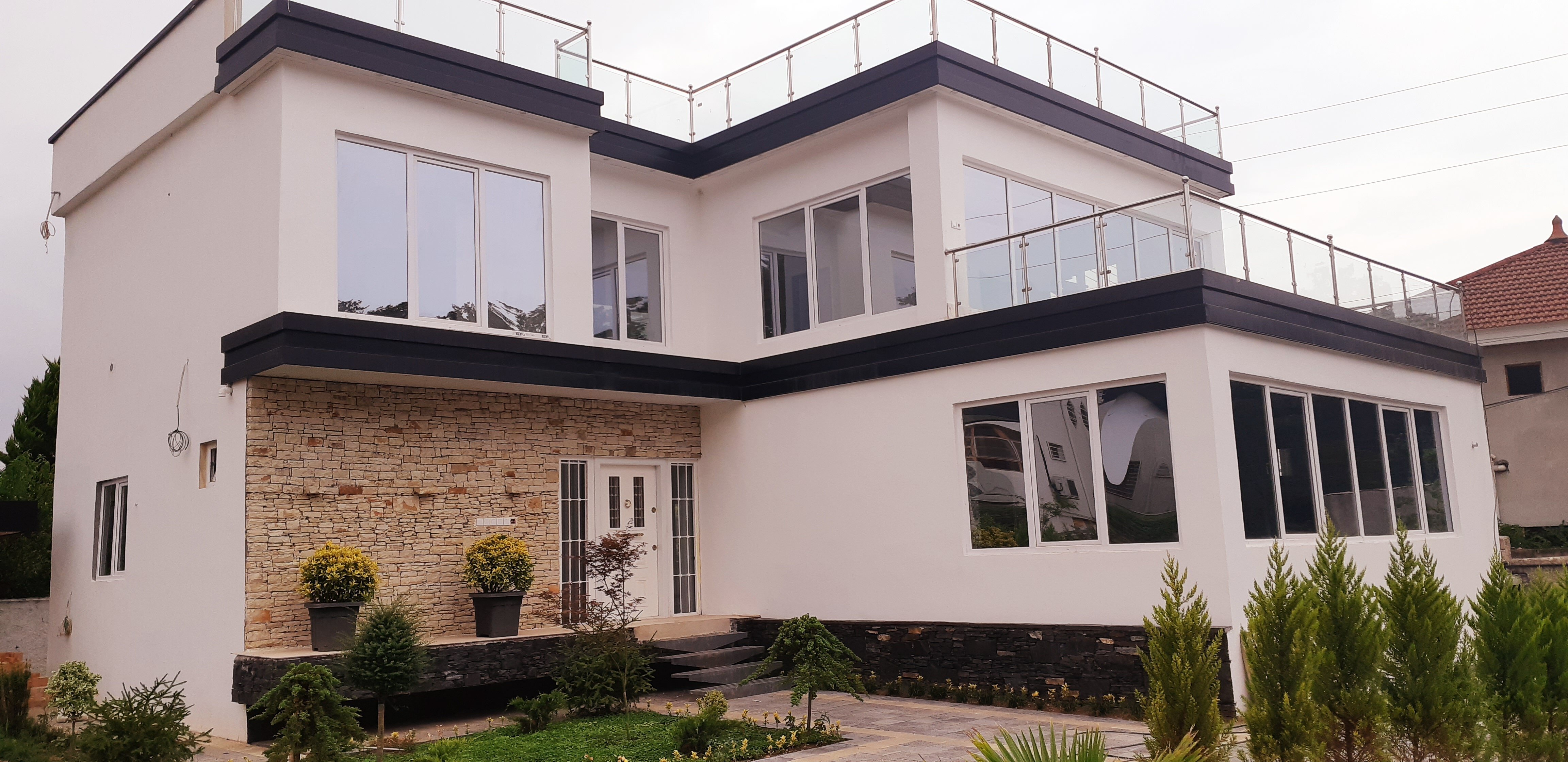 محوطه بیرونی ویلا با وجود درختچه های کوتاه نمای جالبی به فضا بخشیده است و در کل محوطه سازی شده و از امتیازات خوب ویلاست. این ویلا 380 متری هم تراس دارد و هم روفگاردنی وسیع که می توانید تا دلتان می خواهد از تماشای بوته های جنگلی و درختان کوتاه و بلند و جنگل های انبوه لذت ببرید.