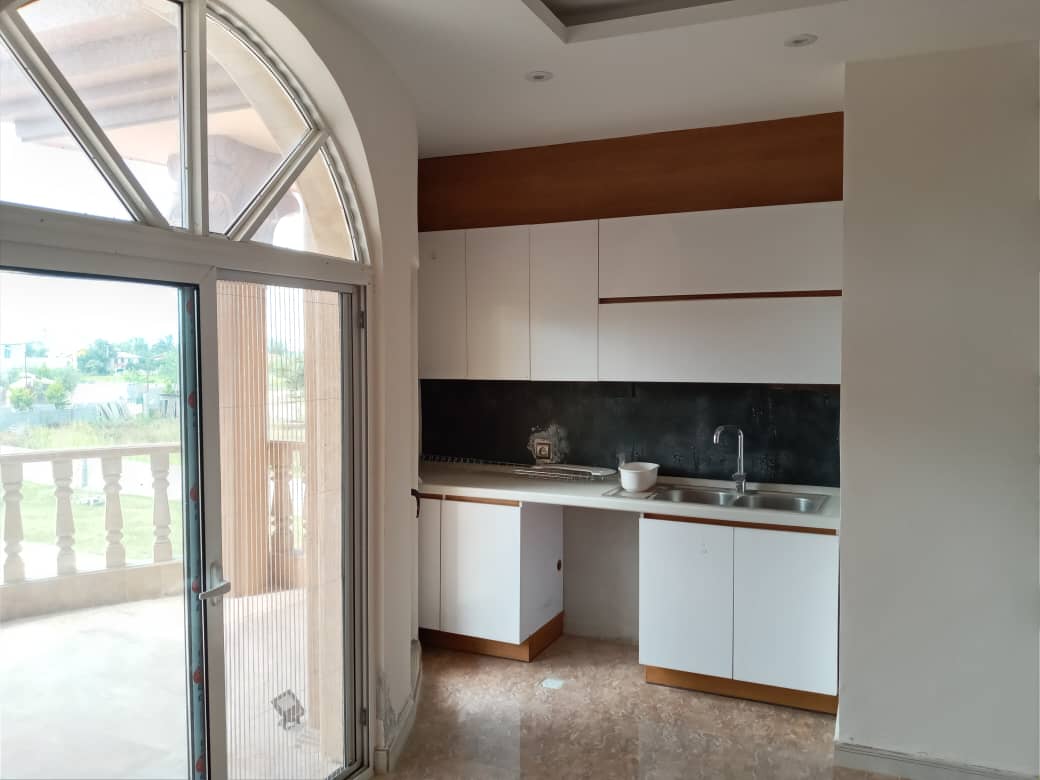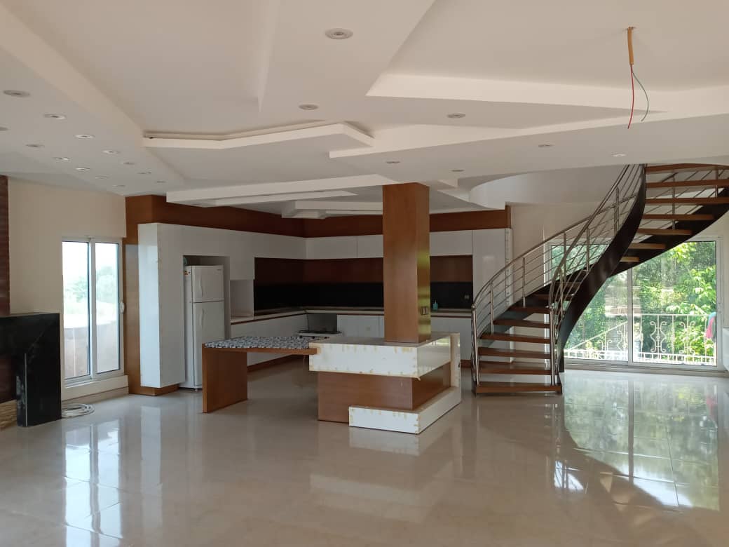 تمام فضا به واسطه ی کفپوش های سرامیکی پوشیده شده است. دو نیم طبقه توسط یک پله ی فلزی مارپیچی به هم متصل شده و در هر طبقه شما می توانید از امکانات ویلا استفاده کنید. سیستم گرمایشی و سرمایشی ویلا به گونه ای تعبیه شده که شما در هر فصل از سال که بخواهید می توانید برای گذراندن اوقات به دور از شلوغی های روز مره ی خود، روی این ویلا حساب نمایید. آشپزخانه ویلا تمام کابینت است و از بهترین چوب ها برای طراحی و ساخت آن ها استفاده شده است.