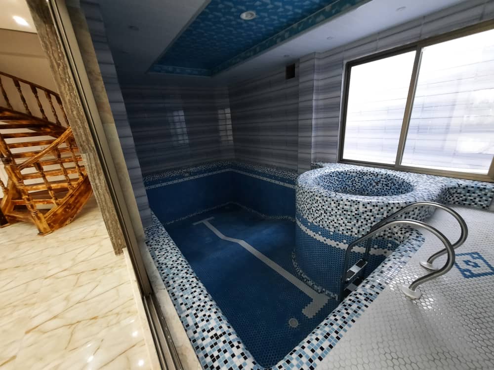 هم کف: دارای استخر و جکوزی و دو سرویس و آشپزخانه و موتورخانه استخر در حیاط خلوت پشت