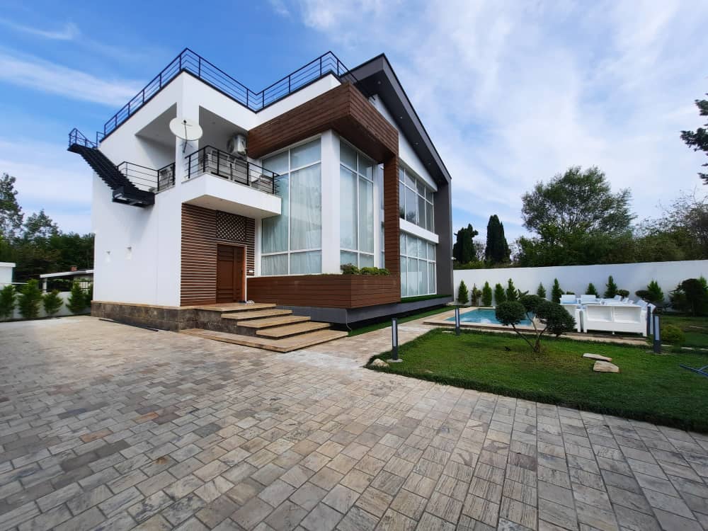 ویلا دوبلوس مدرن فول فرنیش سند و پایانکار کولر اسپلیت متریال درجه یک کار شده استخر ۴ فصل روفگاردن خانه کانلا هوشمند