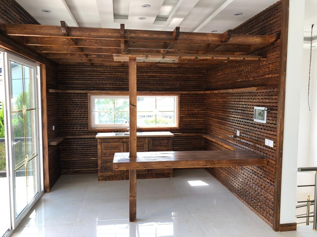 این ملک علاوه بر اتاق نشیمن بزرگ، فضای آشپزخانه شیک و دلباز از بهترین متریال ها هم بهره گرفته و فضای داخلی بسیار خاص و دلنشین تزیین شده است. ترکیب رنگ هایی که در متریال ها استفاده شده باعث شده همه چیز زیبا و جذاب به نظر برسد و شما حس خوبی داشته باشید. شاه نشین هم از دیگر امتیازات برجسته این ویلا جنگلی است که نظرتان را جلب می کند. می توانید قدری در خودتان خلوت کرده و خستگی هایتان را دور کنید.