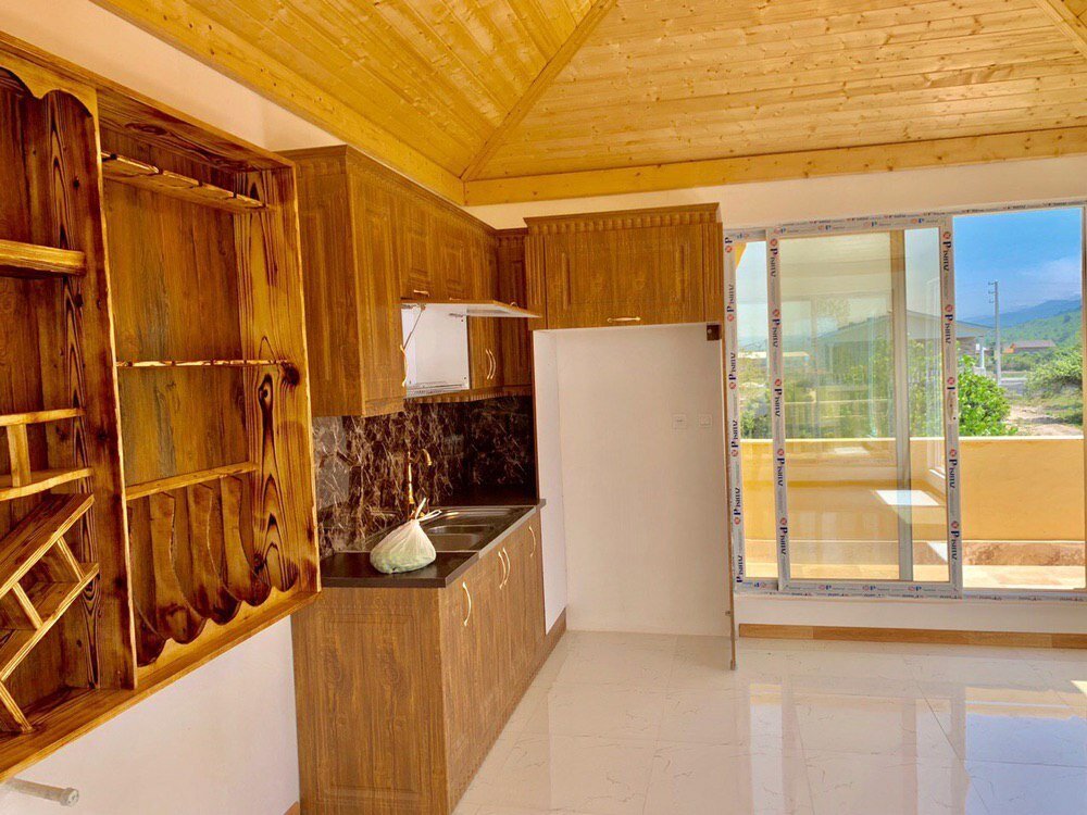 اما از مهم ترین جذابیت های این ویلا که همواره مورد توجه خانم ها قرار می گیرد، وجود آشپزخانه ای لوکس می باشد که با بهره بری از کابینت هایی شیک و امروزی، جلوه ای دو چندان به نشیمن ویلا می بخشد.