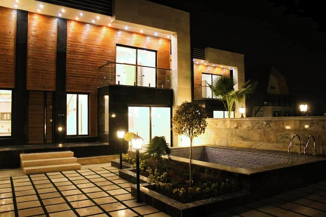 حیاط زیبا و گلکاری شده با نور پردازی عالی