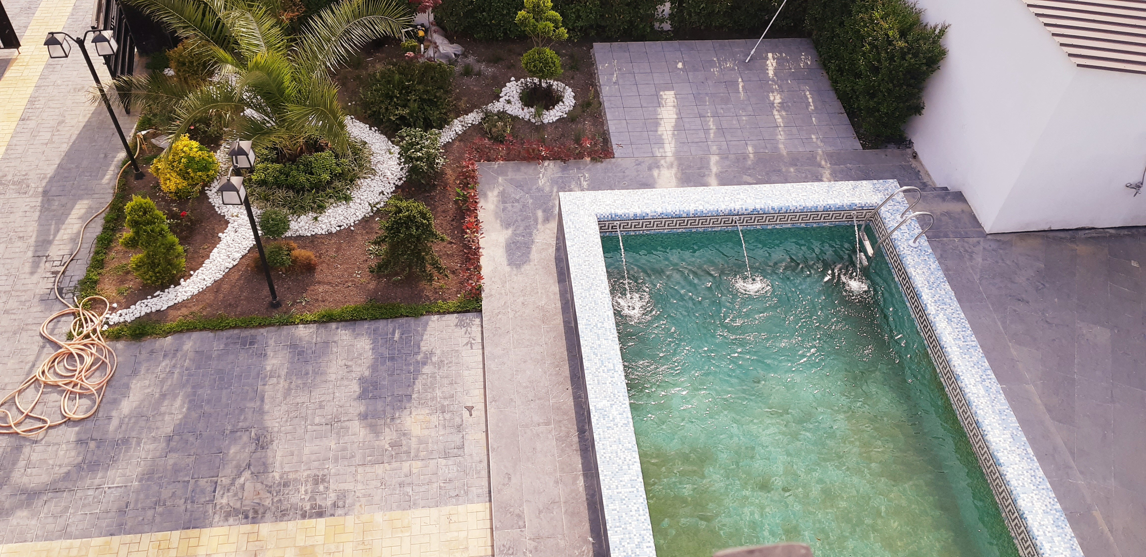چیزی که این وسط نظرتان را بیشتر جلب می کند، استخری بزرگ در وسط حیاط ویلا است که شما را برای آبتنی و استفاده از این ورزش مفرح دعوت می کند. از طرفی محوطه سازی ویلا که در متراژ حدود ۱۷۰ متر طراحی شده آنقدر بزرگ و جذاب است که چشم هر بیننده را با لنداسکیپ زیبای خود خیره می کند.
