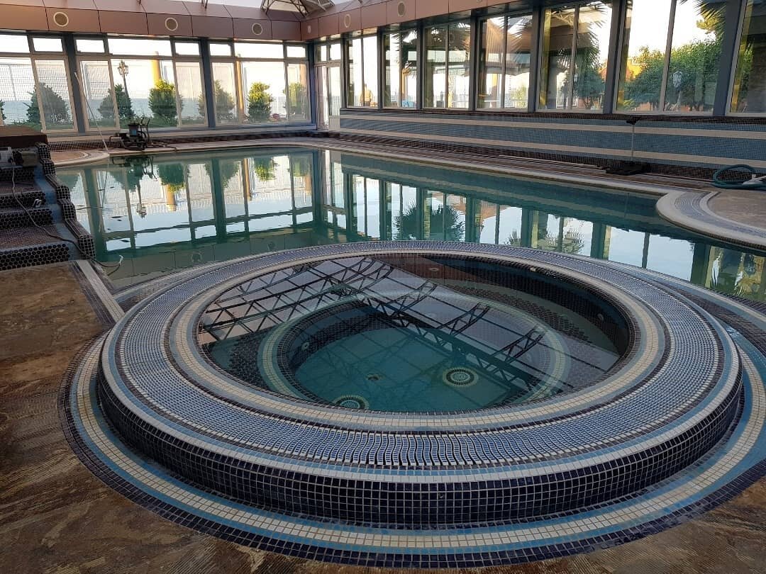استخر این ویلا دارای جکوزی و سونا مجزا و دارای تمامی امکانات است که ساخت اطراف آن تمام شیشه ای انجام گرفته و وقتی داخل استخر هستید بر تمامی ویلا اشرافیت دارید و روز های دل انگیزی را در آنجا برای خود رقم می زنید.