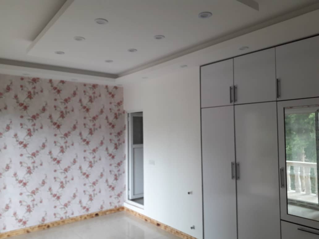 برای کف داخل بنا از سرامیک استفاده شده و نمای خارجی ویلا با سنگ کار شده است. با هدف بالا بردن لذت بصری فضای داخلی ویلا، از نورپردازی ها و سقف کناف استفاده و از کاغذ دیواری برای فضاسازی داخلی کمک گرفته شده است. شاید انتظار شما از خرید ویلا تریبلکس، تعداد اتاق های بیشتر باشد اما لازم است بگوییم که فضاسازی ویلا با حداکثر استفاده از متراژ تعیین شده، اجرا شده است.