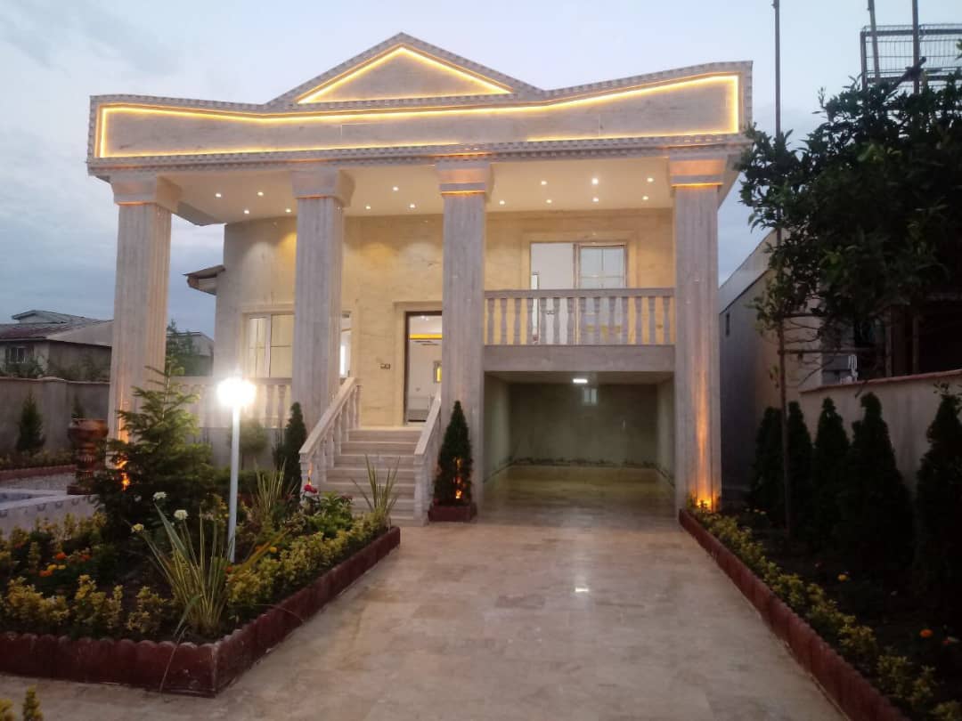 معماری مدرن و بهره گیری از متریال سنگ در نمای خارجی ویلا ظاهری بسیار جذاب به عمارت بخشیده است که با سیستم امنیتی بالایی که دارد خیال شما را از هر بابت آسوده می کند.