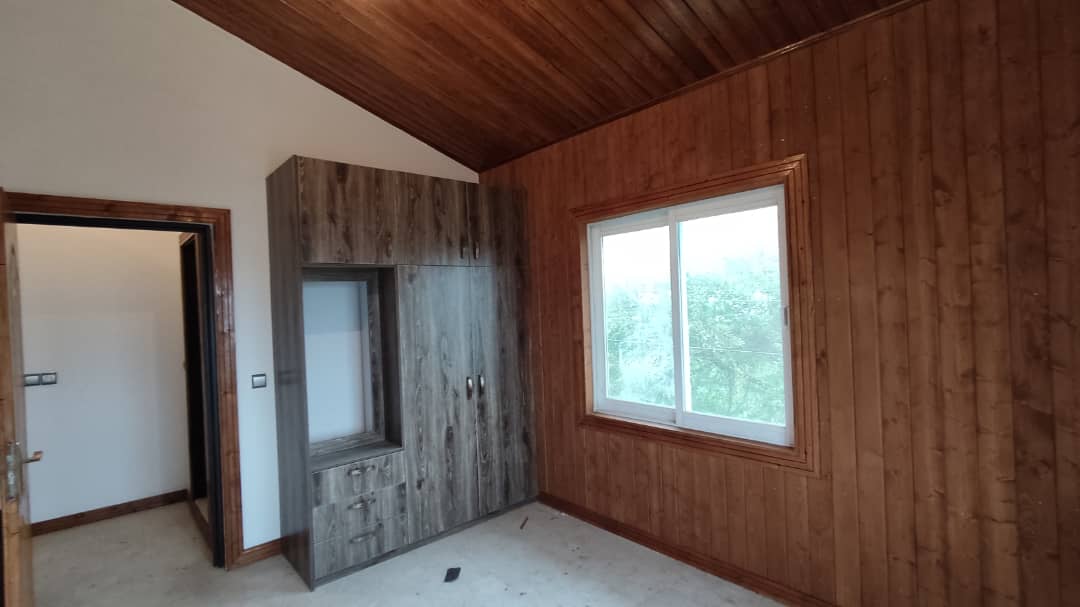 ویلایی کلاسیک دارای آجرهای قرمز رنگ است و نمای جذابی به ساخت ویلا داده اند و سقف این ویلا با نمایی از چوب است که شاید بتوان گفت این نوع نما در ویلا های شمال منحصر به فرد است . این ویلا کنتور آب و برق و گاز اختصاصی دارد.