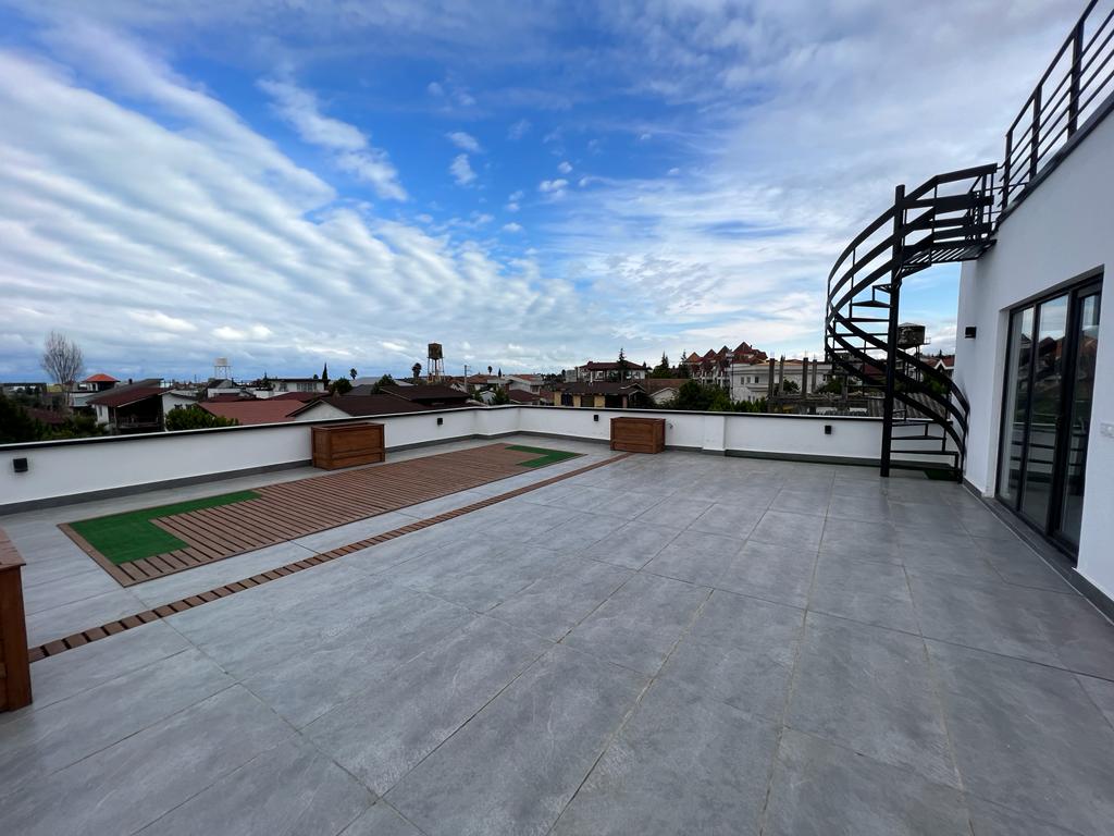 در روفگاردن چمن مصنوعی و سنگ فرش زیبای چوبی شکل طراحی شده است. روفگاردن دارای بهارخوابی بسیار بزرگ همراه با یک خواب مستر و عالی با کابینت ها و آشپزخانه کوچک تعبیه گردیده است. تمامی این زیباییها را یک جا نمی توان دید. اصولاً در یک ویلای زمانی که از روفگاردن گذر می کنیم که راه پله های ظریف و مارپیچی در کنار آن دیده میشود که به یک منطقه بالاتر از روفگاردن با ویوی بی نظیر مواجه خواهیم شدکه یک طرف از آن جنگل های سر به فلک کشیده و بی انتهای البرز و طرف دیگر آن دریای خزر و زیبایی های بیکران موج ها دیده می شود.