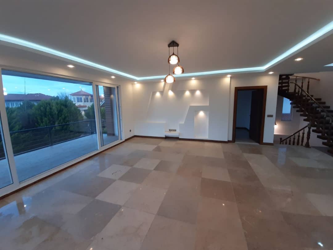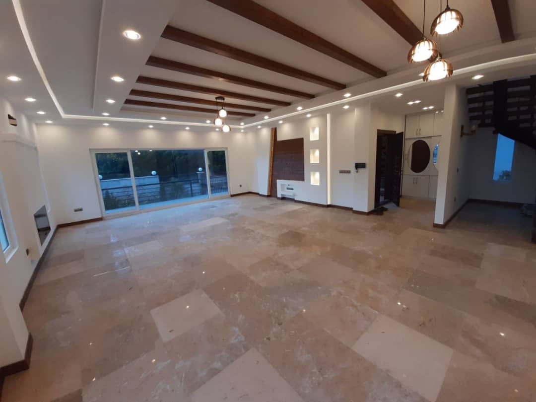 پذیرایی بسیار بزرگ و مستطیل شکلی که در این ویلا همراه با کف‌پوش‌های سرامیکی و سقف های کنف کاری شده با نورپردازی های مخفی برای همیشه زیبا طراحی گردیده است. همان گونه که می‌دانید نورپردازی در خانه از نکات اصلی است که باید به آن توجه بسیار بالایی داشت. آشپزخانه ای زیبا همراه با کابینت با درب های مگنتی درجه یک و زیبا در قلب این خانه طراحی شده است. پنجره های تمامی ویلا دو جداره و از پنجره های قدی و بلند که سرتاسری هستند مخصوصاً در فضای پذیرایی استفاده گردیده است. سیستم گرمایشی بسیار کارآمد از جنس شوفاژ و پکیج در ویلا استفاده شده است که روزهای سرد زمستان را در کنار زیبایی دکوراسیون می توان به گرمی تابستان در قلب خانواده و دوستان سپری کرد.