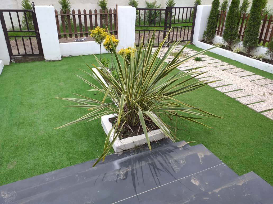 محوطه سازی حیاط به قدری زیبا و منحصر به فرد است که در همان بدو ورود شما را شگفت زده خواهد کرد. استفاده از چمن برای حیاط سازی در کنار باغچه های کوچک و جذاب و درخت نخل بزرگی که در کنار پنجره قرار گرفته شما را مجذوب خود خواهد کرد و می توانید اوقات خوب و دلپذیری را در این فضای سرسبز بگذرانید.