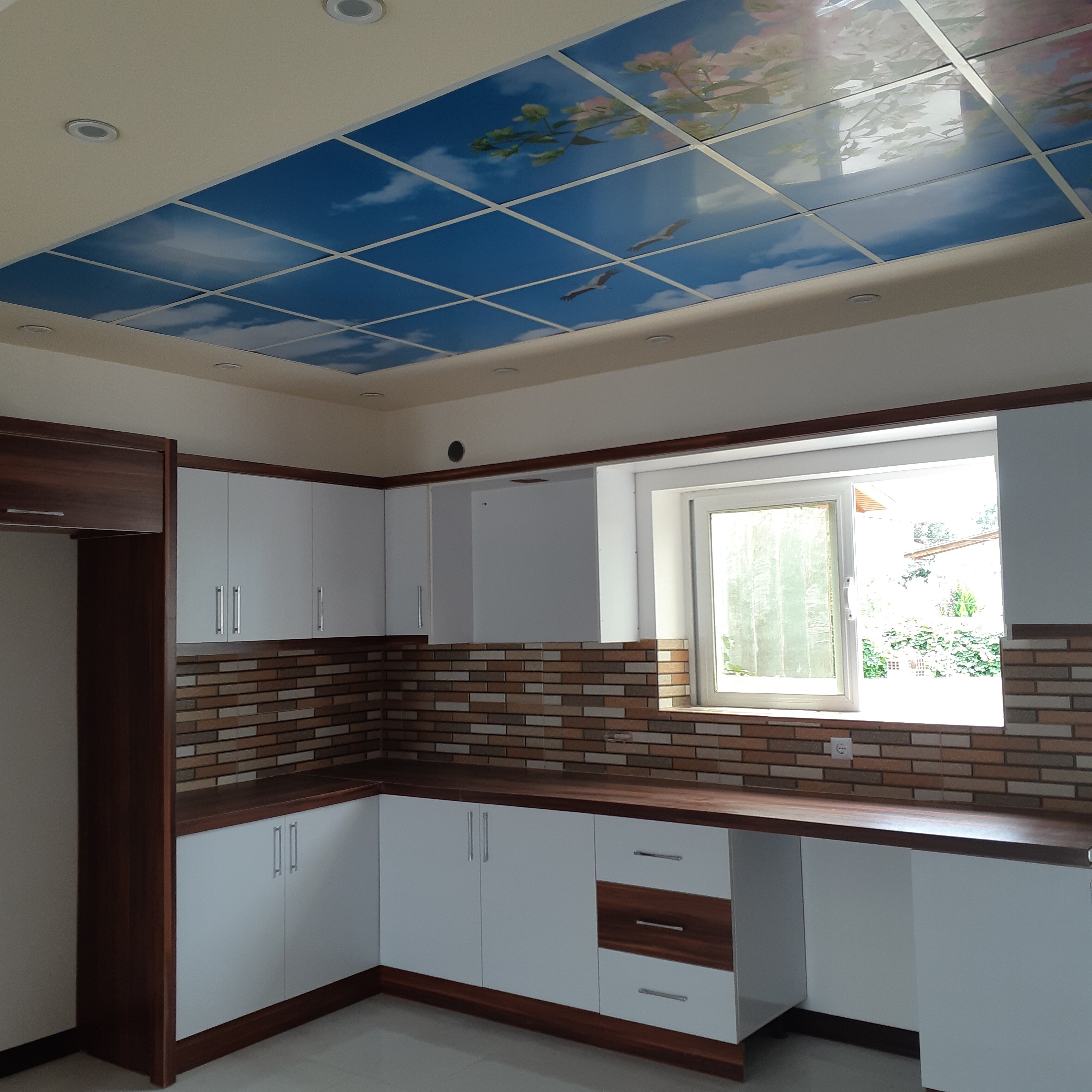 اما اختصاص دادن بخش قابل توجهی از زیر بنا به آشپزخانه و اتاق پخت بی هیچ تردیدی از دیگر ویژگی های برتر این ویلا تراس دار می باشد که موجب جلب رضایت خانم ها می شود. آشپزخانه ای شیک و مدرن که باز هم شاهد عناصر و سایه هایی ملموس از معماری مدرن و امروزی در آن می باشیم. آشپزخانه ای دلباز که وجود کابینت های شیک و جا دار در آن، بهره بری از سرامیک هایی که هارمونی دلنشینی با رنگ کابینت ها و متریال به کار رفته در آن ها دارند و از همه مهم تر وجود آسمان مجازی در سقف آشپزخانه، همه و همه از المان های معماری نوین بوده و ظاهری خیره کننده به این ویلا بخشیده است.