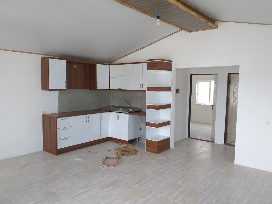 اما بدون شک از برجسته ترین امتیازات این ویلا که در همان بدو ورود به این ویلا ارزان قیمت توجه افراد، خصوصا خانم ها را به سوی خود جلب می کند، اختصاص دادن کنجی از نشیمن ویلا به آشپزخانه می باشد. آشپزخانه ای شیک و امروزی که با بهره بری از کابینت هایی جا دار و مدرن، حالتی لوکس به خود گرفته و کنجی زیبا را به نشیمن ویلا ارزانی کرده است.