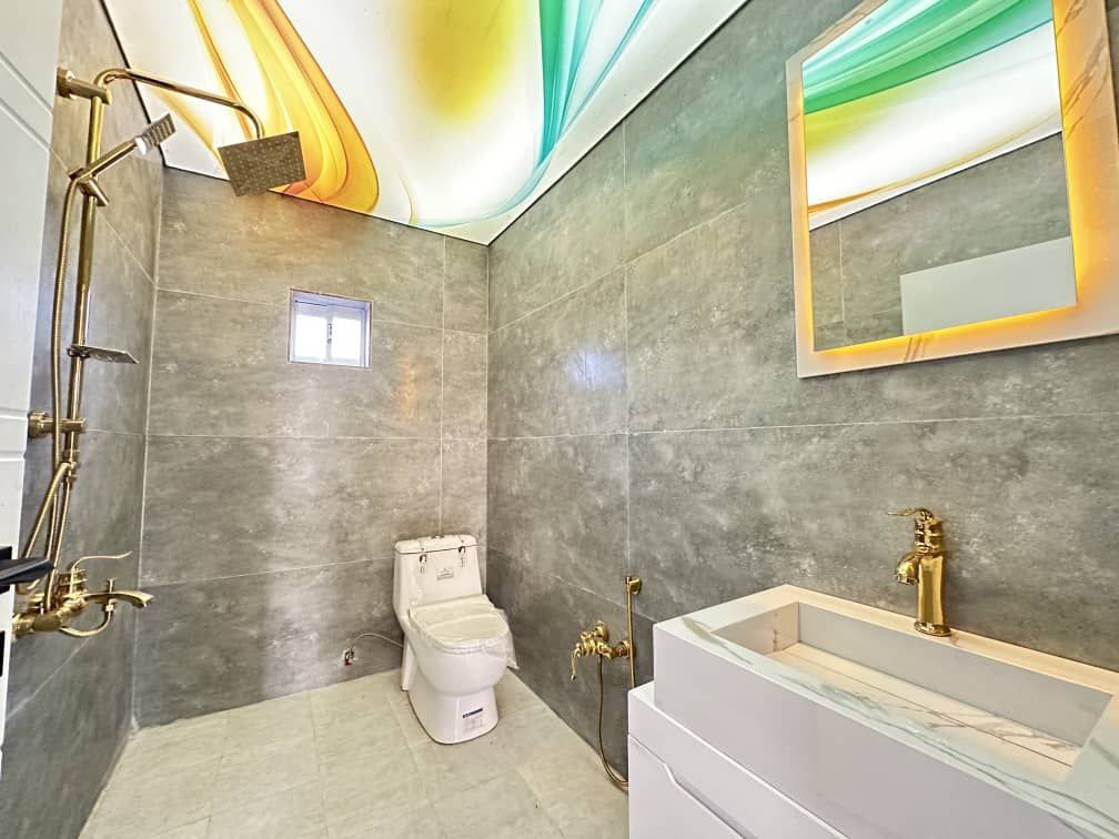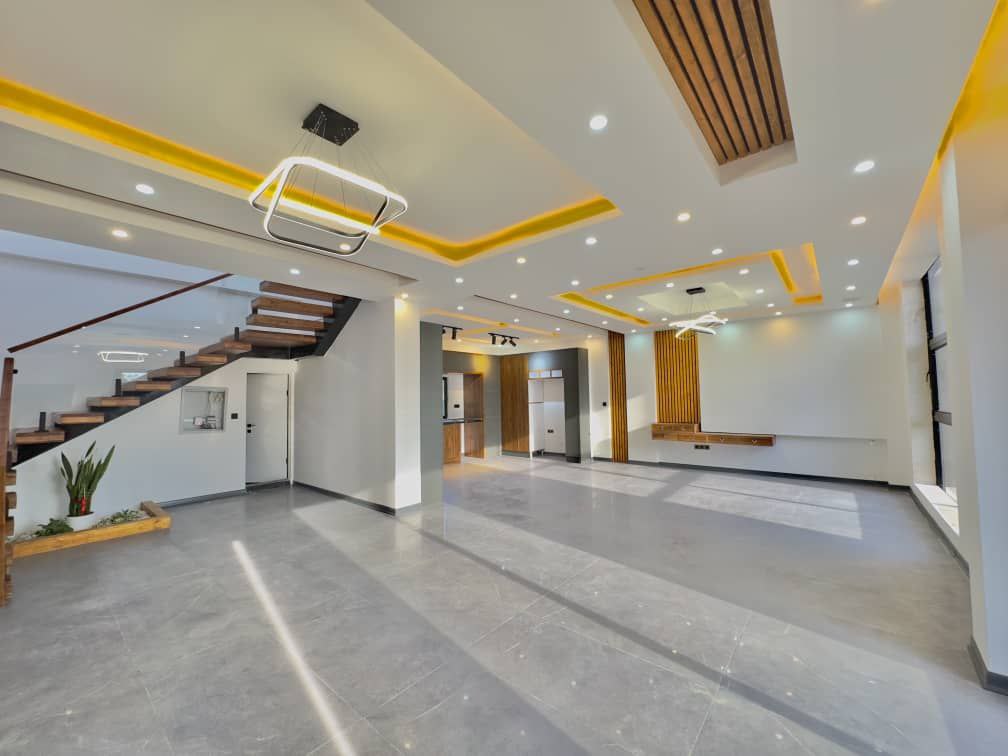 210 متر زمین، 200 متر بنا سه خواب مستر انشعابات اختصاصی نصب سند تک برگ عرصه و اعیان کابینت هايگلاس ترک و کمد دیواری سقف کناف و لوستر با نورپردازی عالی تراس کاربردی با ویو آزاد طراحی زیبا و خاص پسند فضاسازی شیک و مرتب