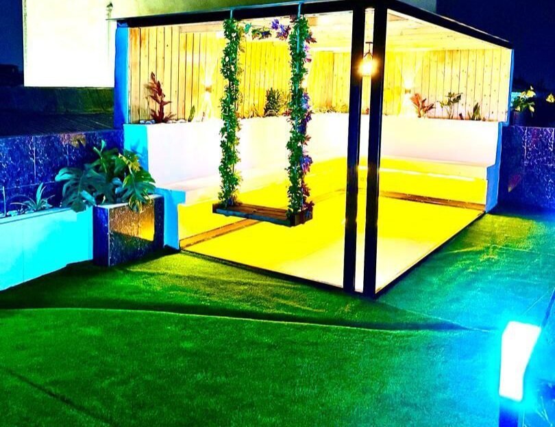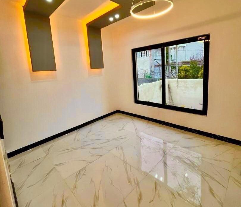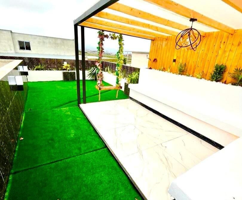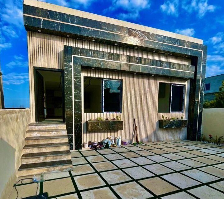 ویلا فلت روف دار 160 متر زمین، 150 متر بنا دو خواب مستر انشعابات نصب کابینت و کمد دیواری گاز صفحه ای و هود نورپردازی با لاین نوری و لوستر آلاچیق، باربیکیو و تاب روی روف چشم انداز زیبا و وسیع به منطقه درب پارکینگ ریموتی