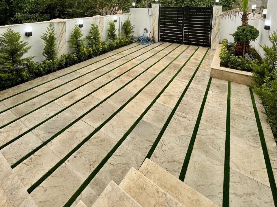 حیاط سازی شیک باغچه کاری و گلکاری شده