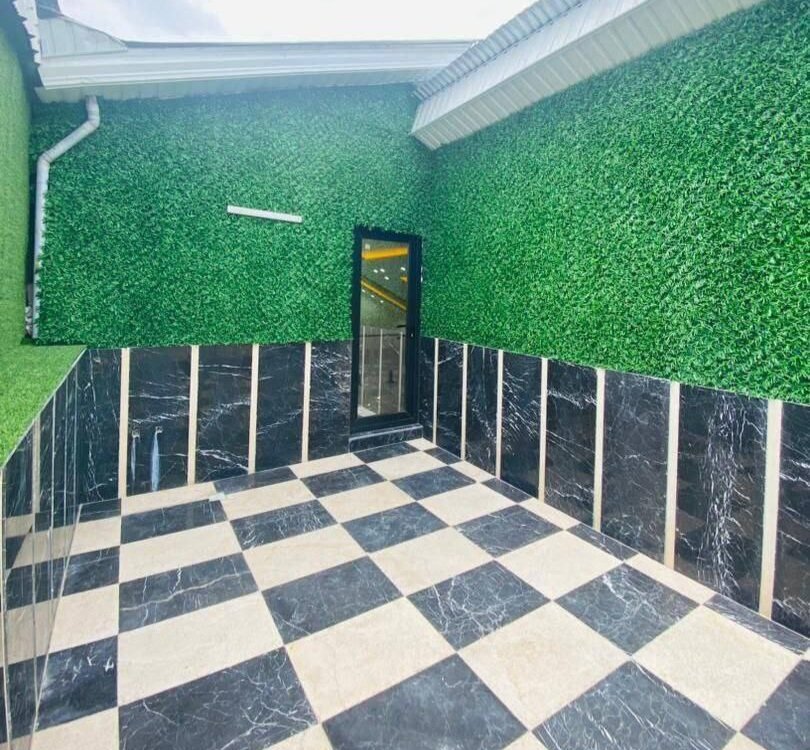 حیاط بزرگ با گلهای تزئینی و مرکبات