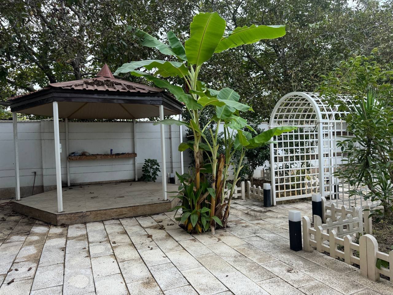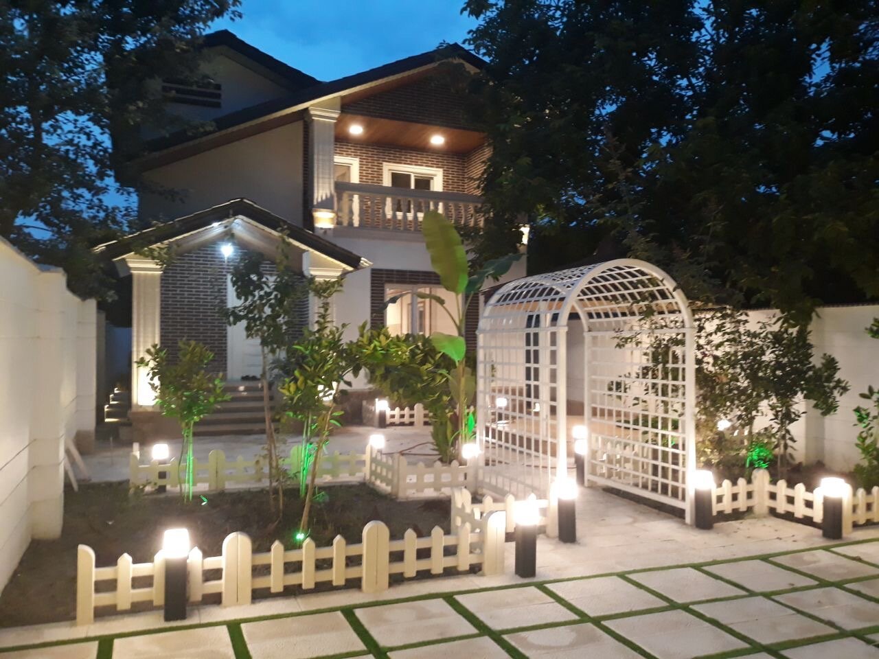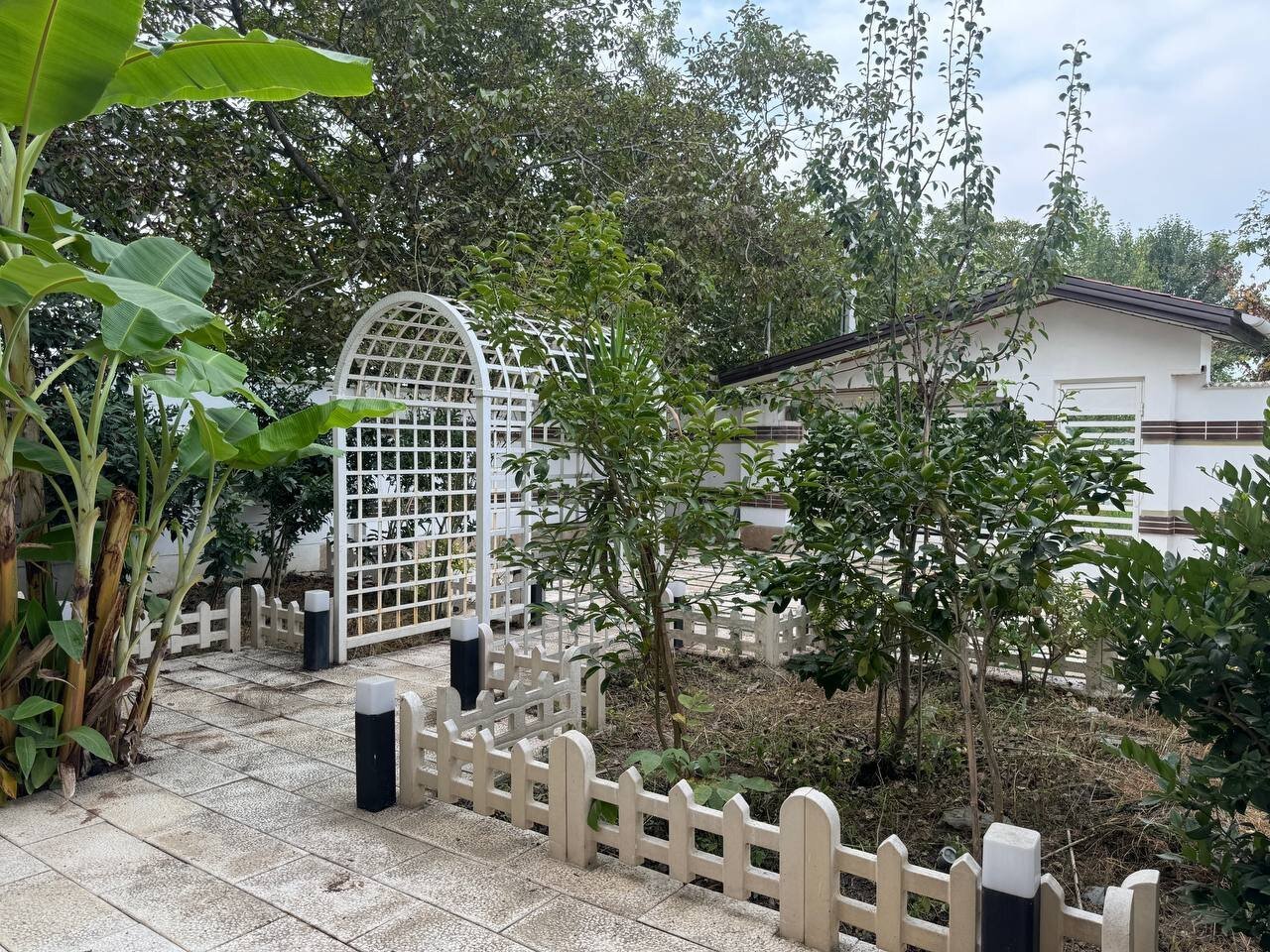 فضای سبز و نهال کاری شده محصور با نرده های سنگی