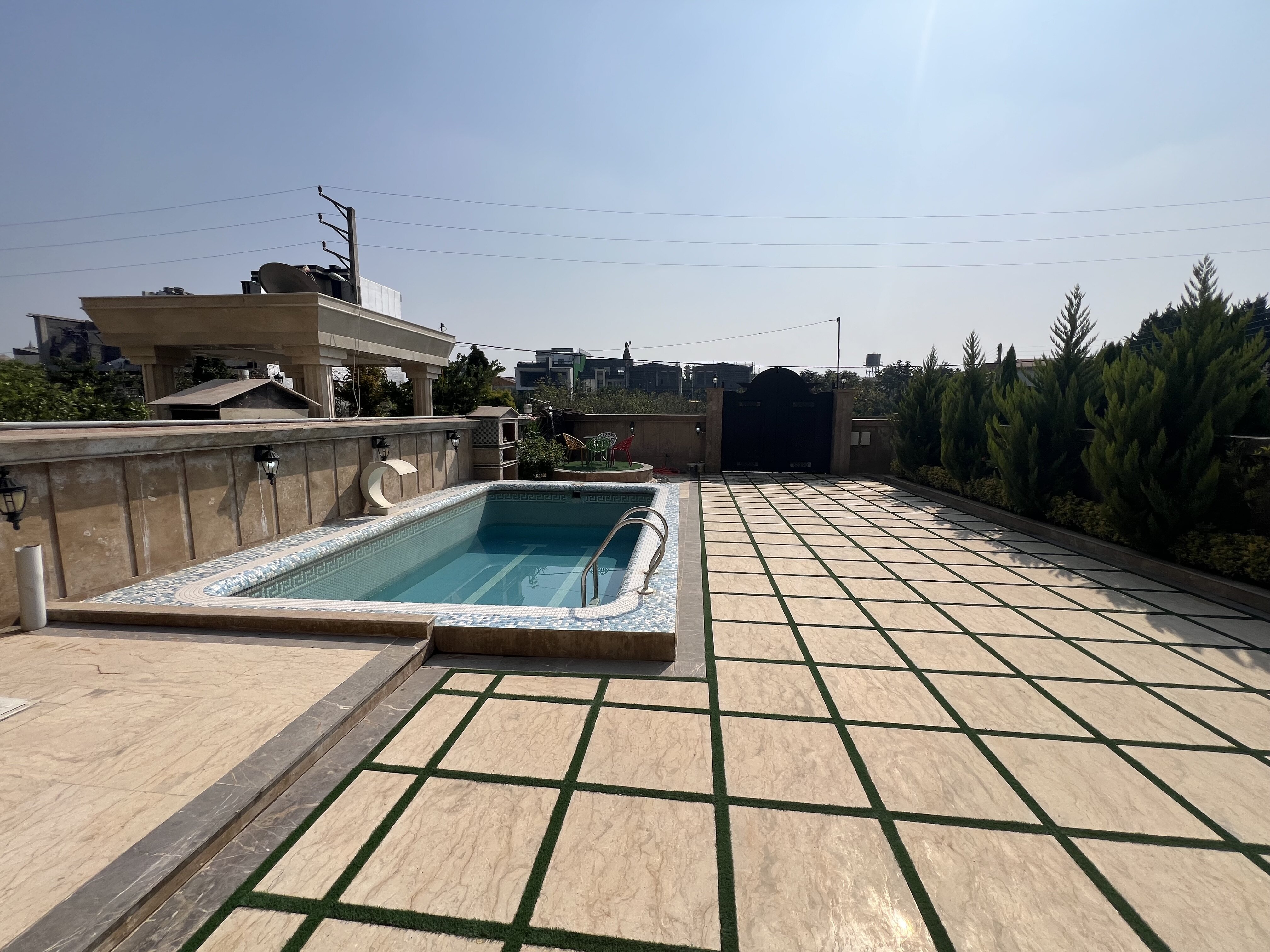 .به مساحت ۳۵۰ متر مربع.دارای ۴۵۰ متر بنا .۴ خواب.استخر ، سونا خشک ، جکوزی ، آلاچیق ، آبنما.وضعیت مدارک: دارای سند.انشعابات آب و برق و گاز ..