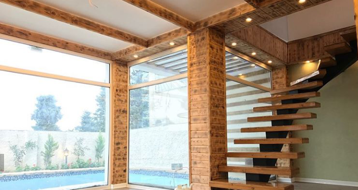 یک ویلا استخردار و تمام عیار که به یمن حضور سرامیک و چوب در معماری خارجی خود نمایی خاص و خیره کننده به عمارت بخشیده و در همان بدو ورود توجه افراد را به سوی خود جلب می کند.