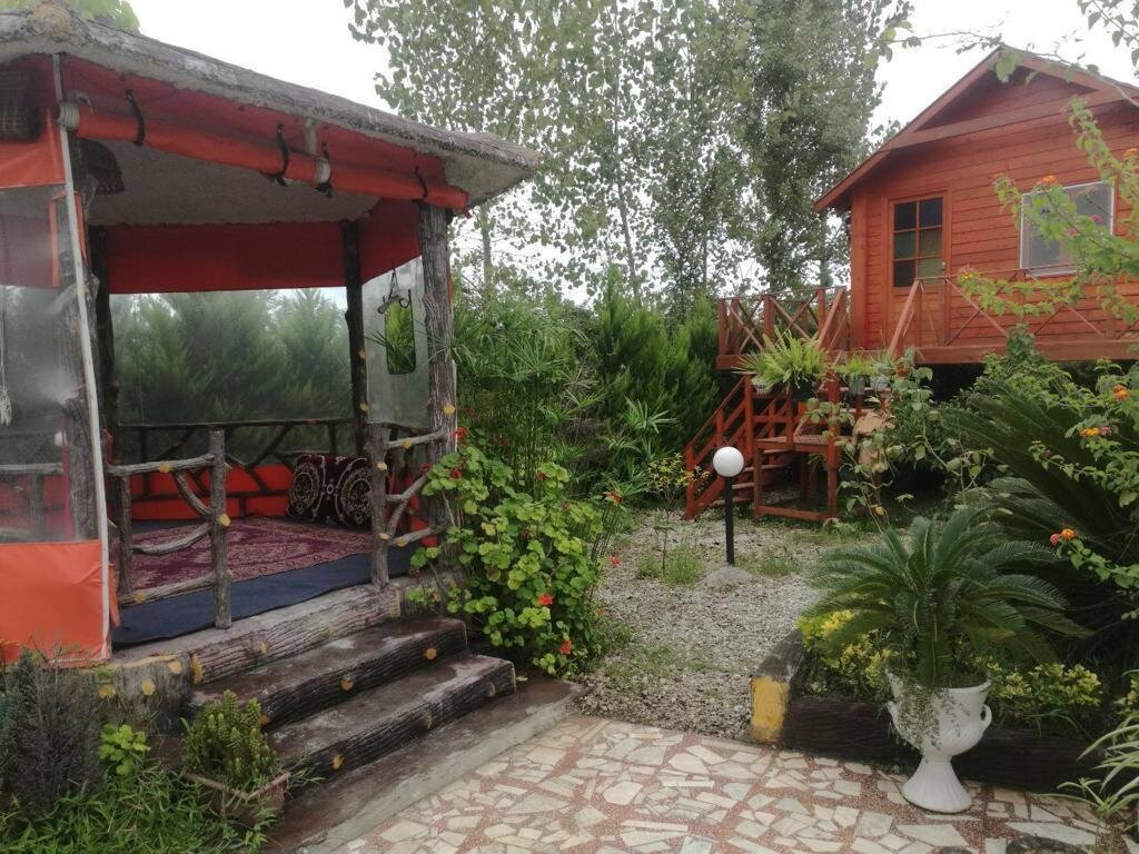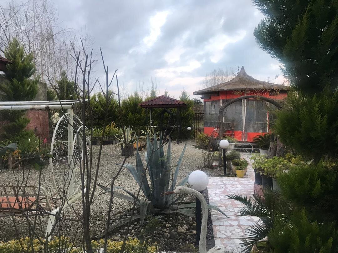 آلاچیق زیبا و بزرگ ویلا که تمام اطراف آن کاور کشی شده است و برای روزهای بارانی عالی و باربیکیو که یکی از مهمترین امکانات برای یک ویلای جنگلی است از امتیاز های بزرگ ویلا محسوب می شود. تمامی حیاط ویلا سنگفرش و باغچه بندی های آن از سنگریزه های زیبایی پر شده است. درختان میوه و پرتقال که مثمر می باشند و حوض آبشار در این باغ زیبا قرار گرفته است.